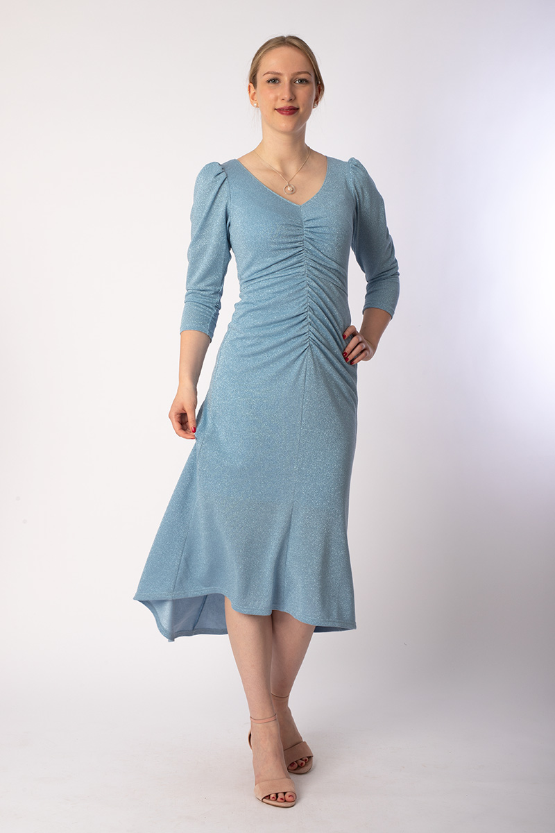 Ob zur Hochzeit, zur festlichen Gala oder den Cocktailempfang – ANGELINA überzeugt mit ihrer glitzernden Mermaid-Silhouette und verspielten Elementen auf ganzer Linie. Mit ihren romantischen Raffungen, der körpernahen Form und der modischen Midi-Länge setzt sie starke Frauen gekonnt in Szene. Der voluminöse Ballonärmel und der V-Auschnitt sorgen für zusätzliche Dramatik. Aus hochwertiger und elastischer Viscose gefertigt und mit zusätzlichem Innenfutter versehen bietet ANGELINA neben der ausgefallenen Optik auch besonderen Komfort. Mit ANGELINA sind Sie bereit für deinen persönlichen Red-Carpet-Moment …