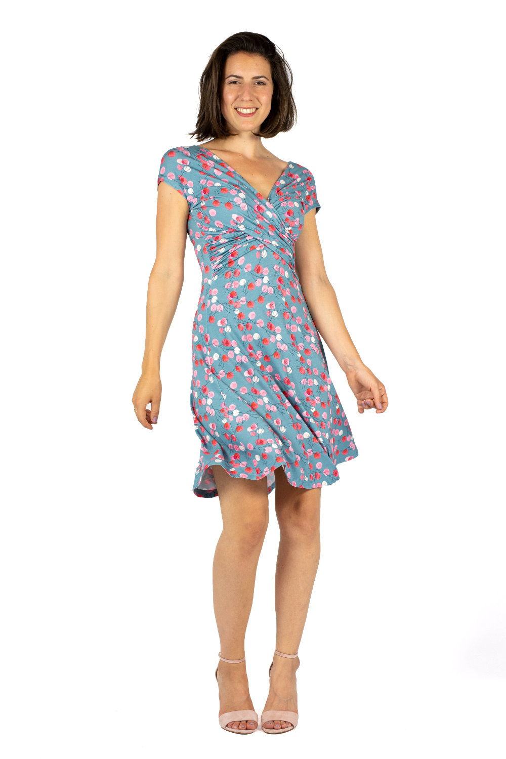 Unser Kleid FELICA ist elegant und alltagstauglich gleichermaßen. Der Wickeleffekt im Vorderteil zaubert eine tolle Taille.