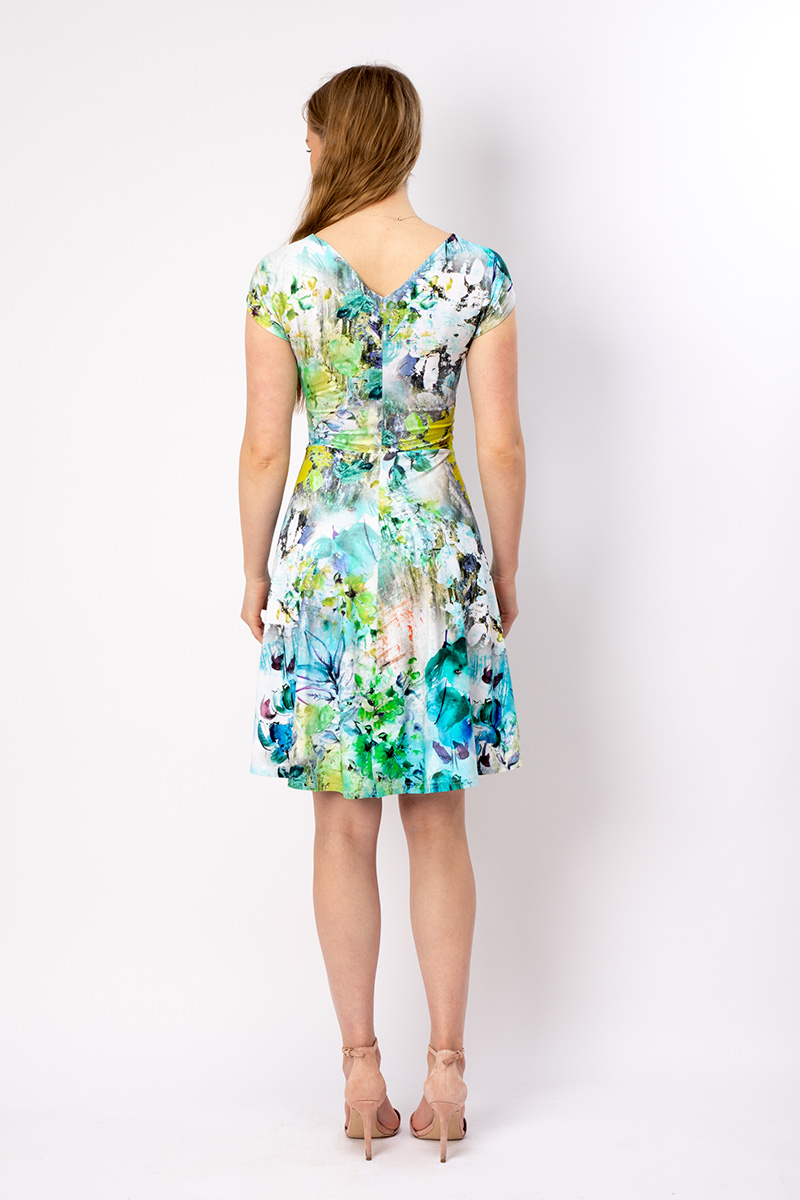 FELICA ist unser Lieblingskleid für laue Sommerabende. Es zaubert ein verführerisches Dekolleté und eine schmale Taille. Unser Kleid FELICA ist elegant und alltagstauglich gleichermaßen. Der Wickeleffekt im Vorderteil zaubert eine tolle Taille. Der Ausschnitt ist vorne und hinten V-förmig und in der Größe dadurch etwas variabel. Die Drapierung eignet sich für kleinere und größere Körbchengrößen. Der Rock hat eine wunderschöne, schwingende Weite und fällt glockig. Dadurch werden weibliche Rundungen wunderbar kaschiert. Es hat eine überschnittene Schulter, daher eignet es sich sehr gut für schmalere oder auch breitere Schultern. Gehen Sie mit FELICA und Ihrer besten Freundin an einem Sommerabend in eine Cocktailbar. Sie beide werden nicht alleine bleiben…;-)
