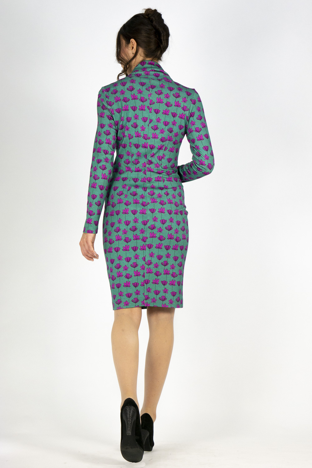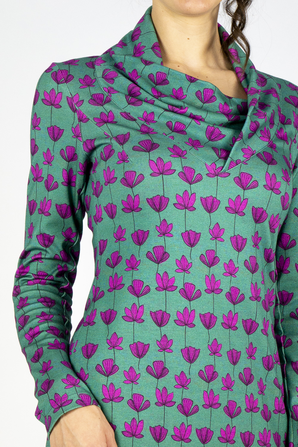 Kleid GESA ist schlicht und absolut wintertauglich. Es hat eine schmale, gerade Silhouette und ist um den Bauch etwas leger geschnitten. Sie machen damit überall eine gute Figur. Der weiche, asymmetrische Kragen ist außergewöhnlich dekorativ und natürlich auch wärmend. Der überlange Ärmel reicht bis auf den Handrücken und wird sogar großen Frauen gerecht.