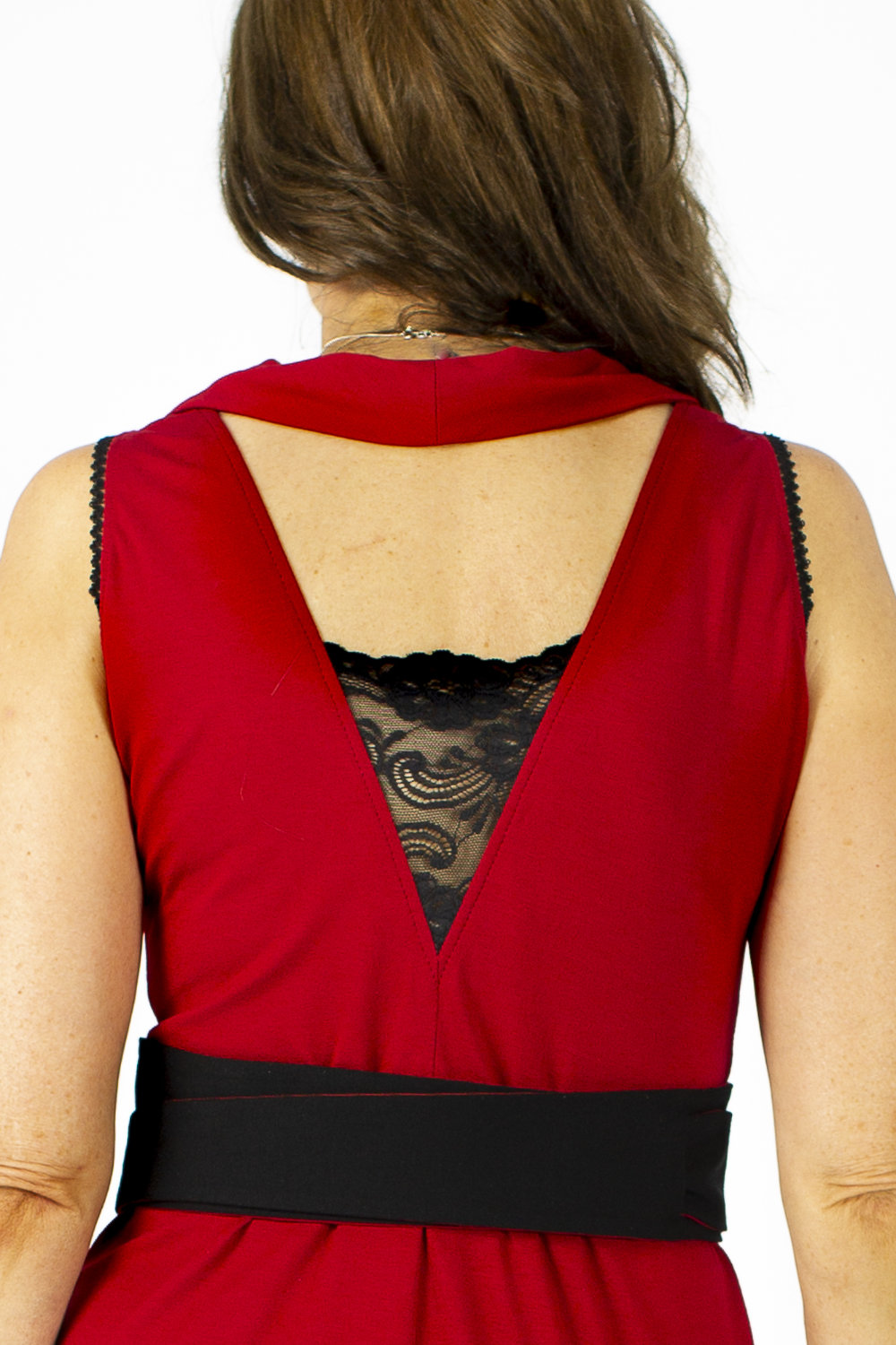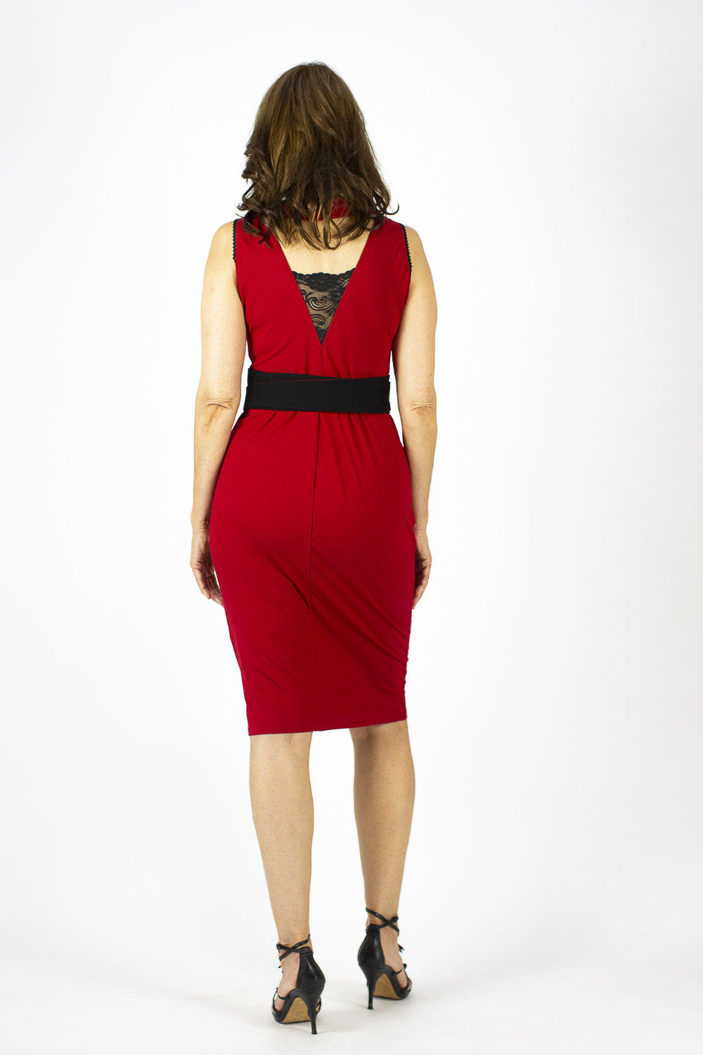 Tragen sie das Modell MARA tagsüber mit unserem Bolero NELE. Es ist dann ein schmales, klassisches Etuikleid, absolut bürotauglich. Zur After Work Party zeigen Sie dann den entzückenden Rücken…