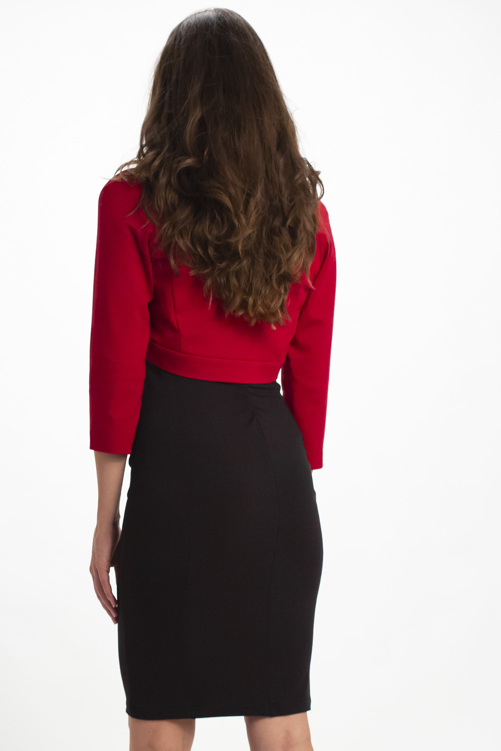 Der Bolero NELE ist wunderbar mit schmalen Jersey-Kleidern kombinierbar und kreiert durch seine schlichte Eleganz ein stilvolles Outfit.