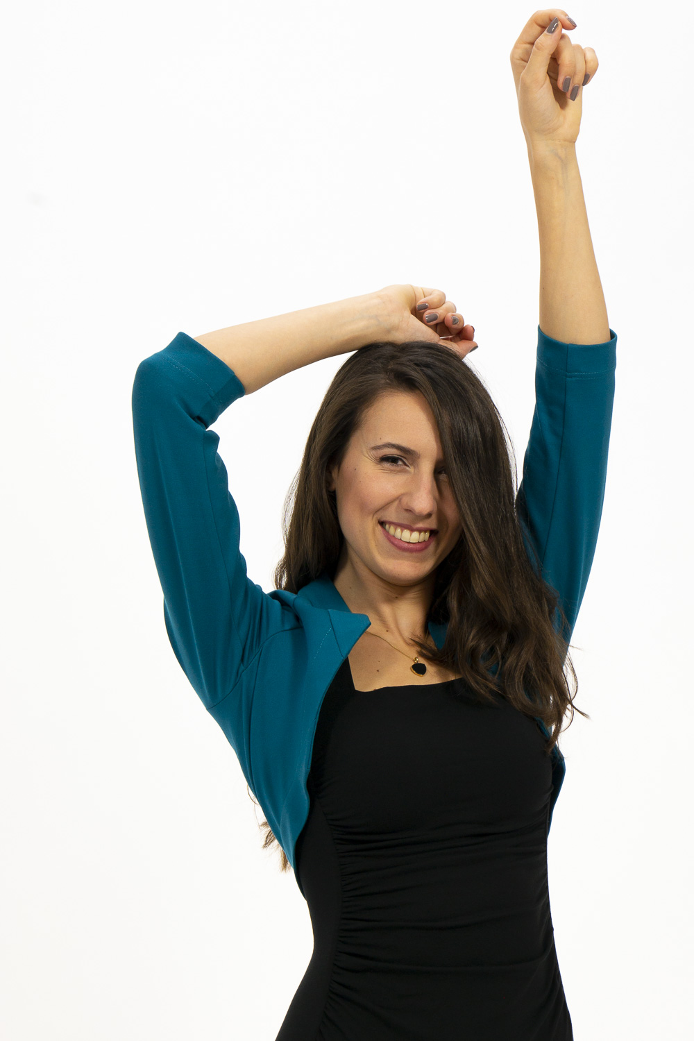 Der Bolero NELE ist wunderbar mit schmalen Jersey-Kleidern kombinierbar und kreiert durch seine schlichte Eleganz ein stilvolles Outfit.