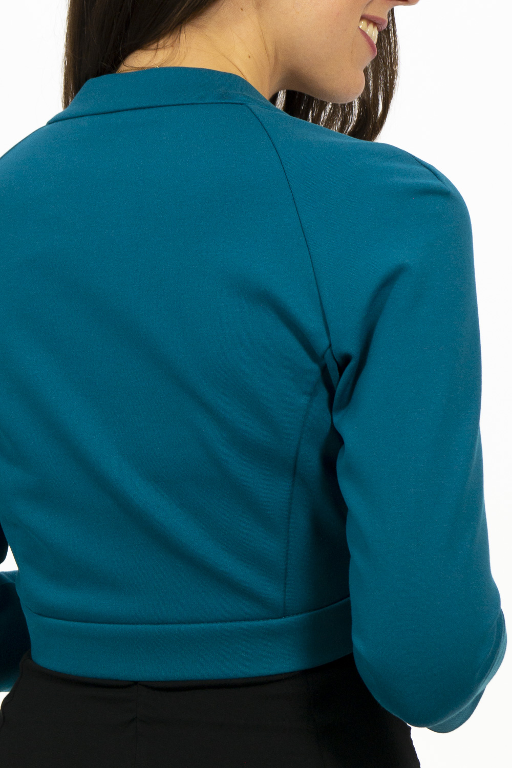 Der Bolero NELE ist ungefüttert, der elastische Winterjersey sorgt für komfortable Beweglichkeit.