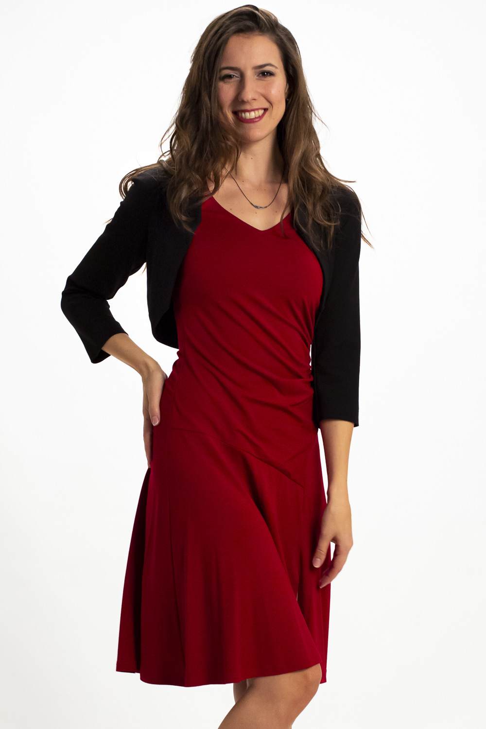 Der Bolero NELE ist wunderbar mit schmalen Jersey-Kleidern kombinierbar und kreiert durch seine schlichte Eleganz ein stilvolles Outfit.