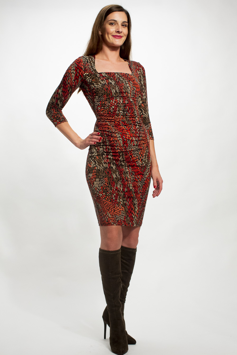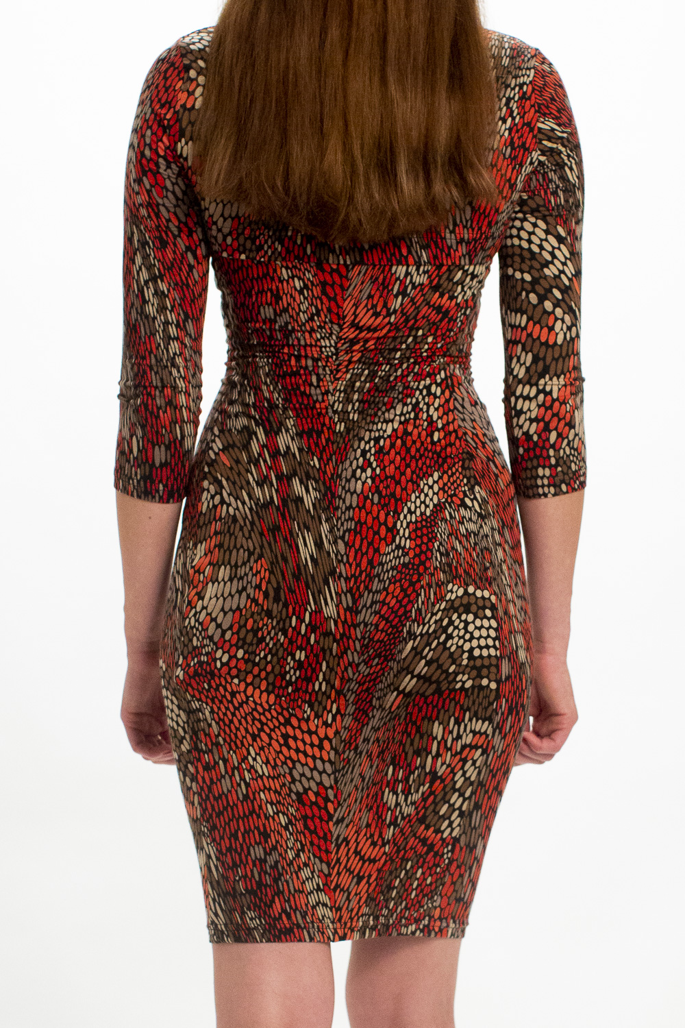 Unser schmales Basic-Kleid. Der Schnitt zeigt viel Liebe zum Detail. Die Raffung im Vorderteil kaschiert weibliche Rundungen perfekt. Die formgebenden Längsnähte strecken die Figur. Im Rücken gibt es in der Taille eine kleine Raffung. Die Passenabtrennung im oberen Bereich ist nicht nur dekorativ sondern auch perfekt platziert. Sie kaschiert die darunterlegende BH-Linie perfekt!